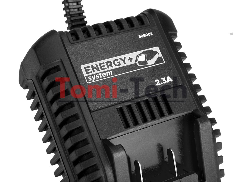 Sada E+: zastrihávač (58G030) + 2Ah batéria + nabíjačka. Technické údaje: Akumulátorový zastrihávač Energy+ 18V, otáčky 9000 min-1, šírka strihu 254 mm, nastavenie dĺžky rukoväte 1,1-1,4 m, polymérové čepele 88,5 mm, hmotnosť 1,8 kg, príslušenstvo: čepele - 22 ks.Dodatočné parametre