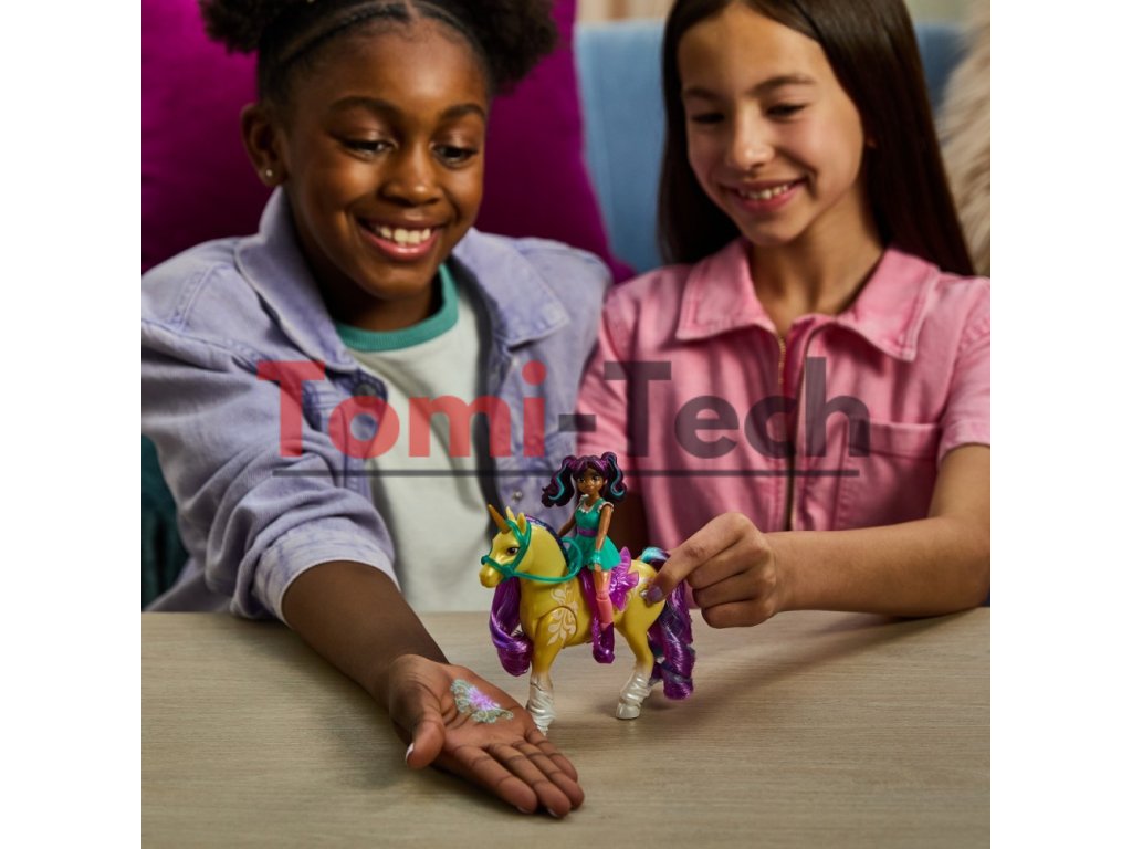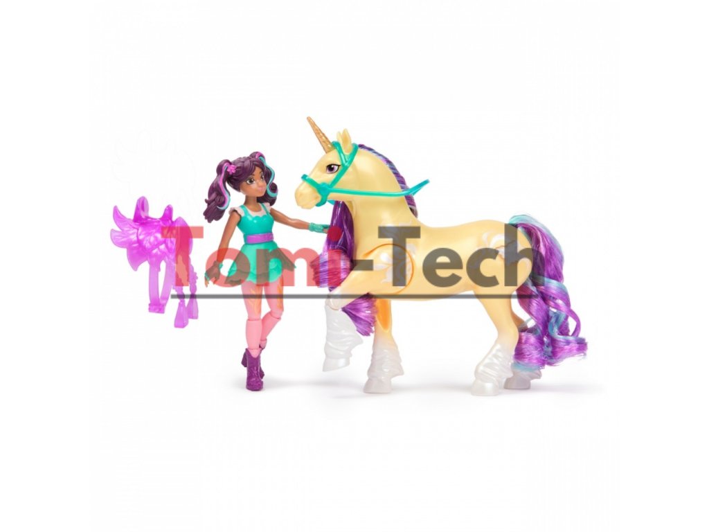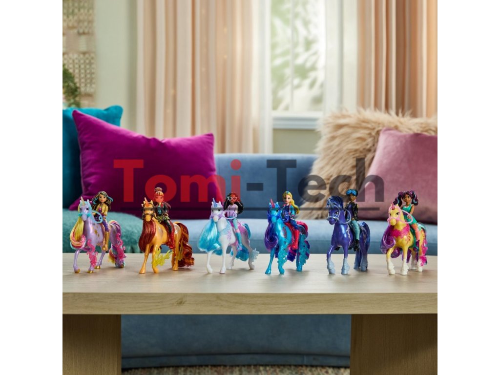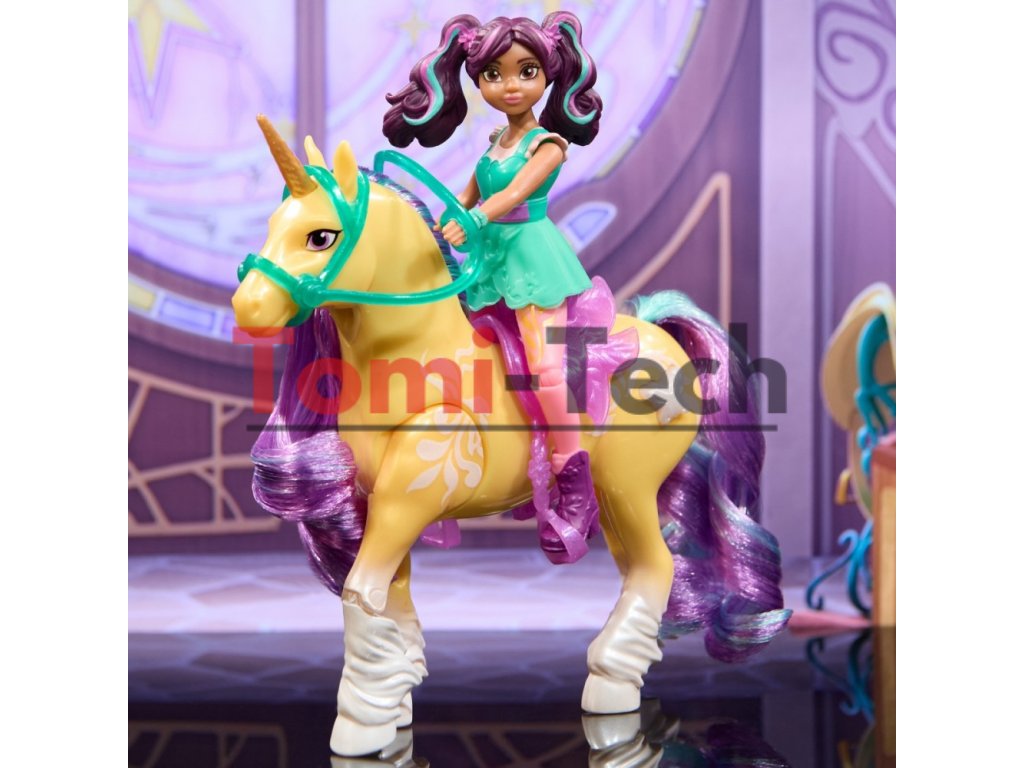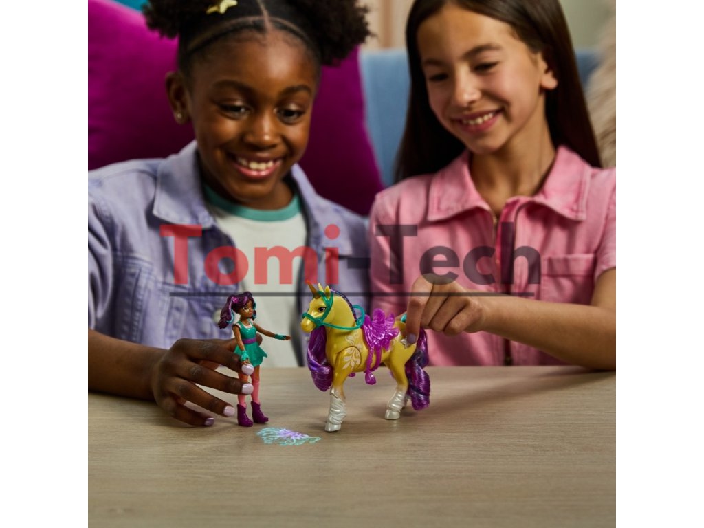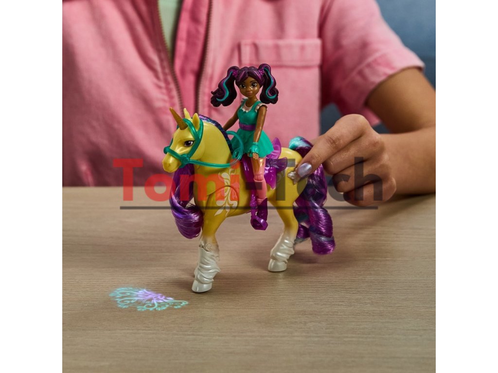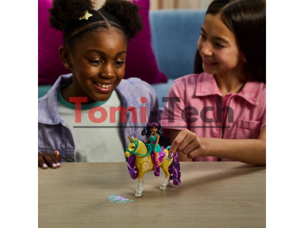 Oslavujte puto medzi jazdkyňou a jednorožcom so Sophiou a Hviezdou zo série Unicorn Academy: Sila priateľstva. Táto sada, inšpirovaná animovaným seriálom NETFLIX a obľúbenou sériou detských kníh, kde vládne priateľstvo, podnieti predstavivosť pre nekonečné rozprávanie príbehov. 11 cm Sophia obsahuje realistické, verne reprodukované detaily vrátane kovových značiek sily a 7 bodov artikulácie pre dynamické pózy. Hviezda je vysoká 12 cm a dotvára Sophiin vzhľad krásnymi detailmi vrátane kovových značiek magickej sily a 2 priesvitných klipov na nohy. Udržujte Hviezdinu hrivu lesklú a hladkú pomocou kefy a počas hry posaďte Sophiu na Hviezdu a vydajte sa na dobrodružstvá. Priesvitná odnímateľná uzda a sedlo umožňujú Sophii bezpečne sedieť na Hviezdinom chrbte. Ak chcete viac spôsobov, ako preskúmať Unicorn Academy so svojimi obľúbenými postavami, pozrite si ďalšie bábiky vrátane Avy, Layly, Isabel, Valentiny a ich jednorožcov (sady sa predávajú samostatne) a rozšírte si svoj svet. Hračky Unicorn Academy sú skvelými darčekmi na sviatky alebo špeciálne príležitosti pre deti, ktoré milujú hračkárske jednorožce a kone, bábiky a doplnky, domčeky pre bábiky, zberateľské predmety, plyšové hračky a ďalšie. Zažite očarujúce dobrodružstvá v Unicorn Academy so Sofiou a Hviezdou!