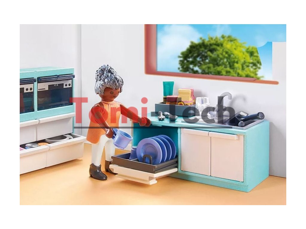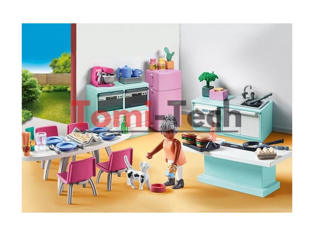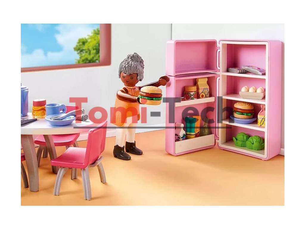Táto starostlivo navrhnutá hracia sada PLAYMOBIL je ideálna pre malých fanúšikov interiérového dizajnu. Útulná kuchyňa s kuchynským ostrovčekom ponúka dostatok priestoru na spoločné varenie a stolovanie. Nielenže tu môže rodina stolovať, ale aj plyšová mačka si tu nájde svoje maškrty. Kuchyňa je vybavená voľne stojacou chladničkou, kuchynským robotom, mixérom, hriankovačom, riadom a mnohým ďalším príslušenstvom. Táto sada je navrhnutá tak, aby rozšírila nový dom o zimnú záhradu. Ideálna na kombinovanie s ďalšími sadami zo série PLAYMOBIL Residential House.