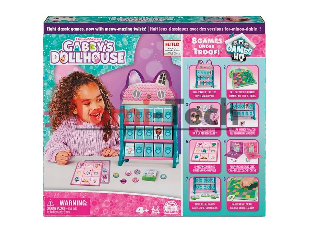 - NA MOTÍVY SERIÁLU NETFLIX Ak vaše deti milujú hračky s mačacím domčekom Gabi, už nehľadajte zábavné stolové a kartové hry pre dievčatá aj chlapcov. Táto herná centrála je určená pre 2-4 hráčov vo veku od 4 rokov.