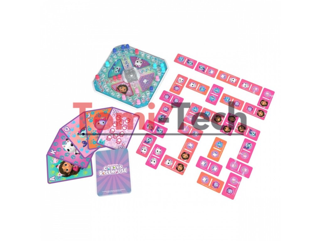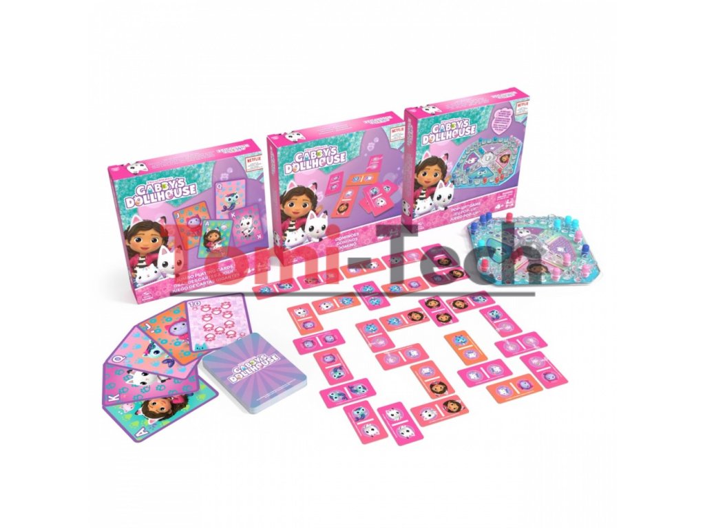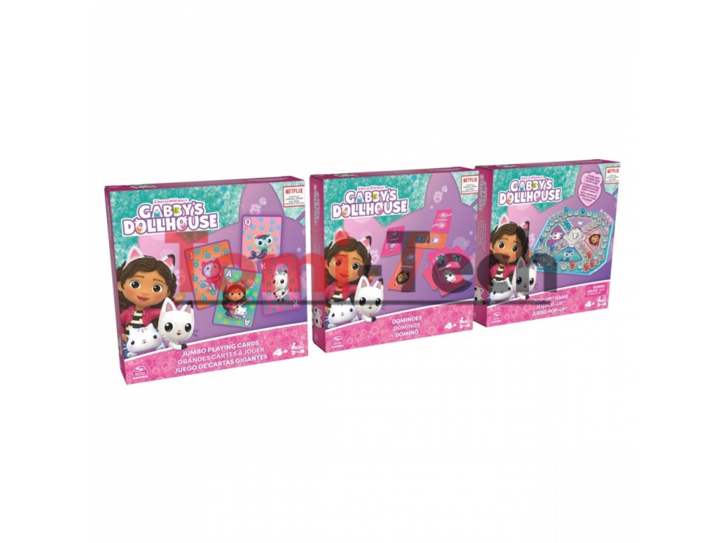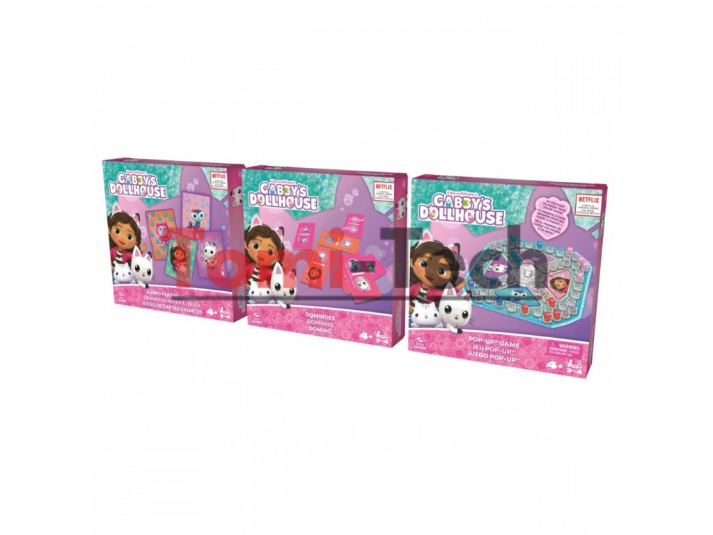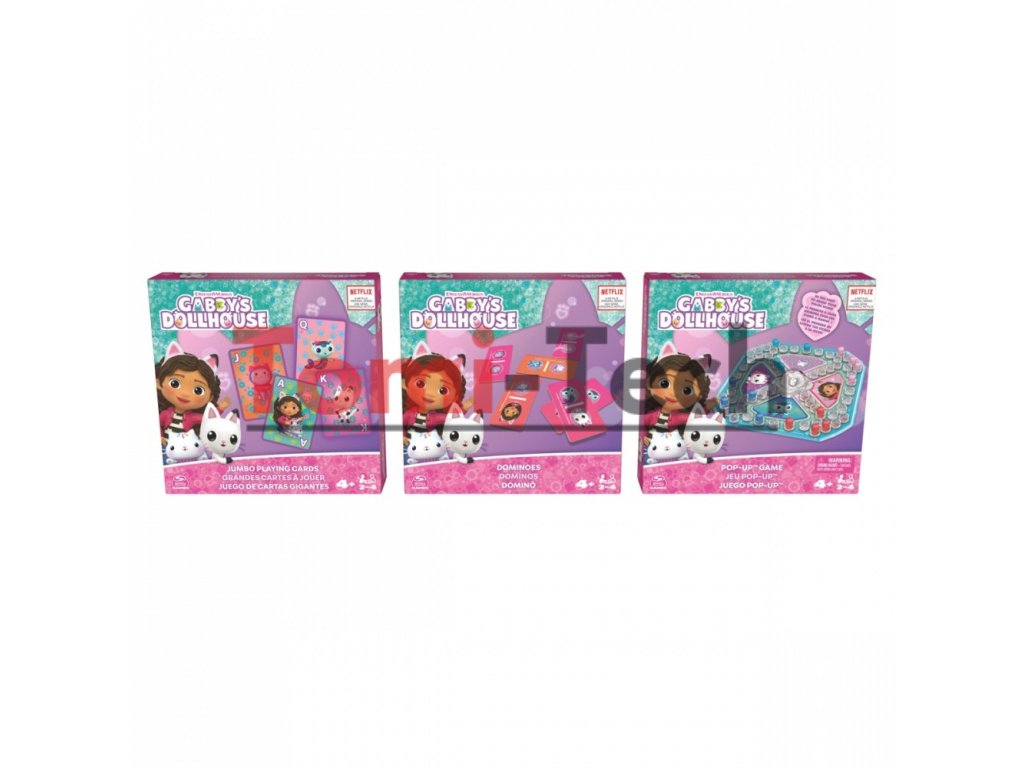 Herná sada Gabi the Cat House 3 od Spin Master Games, založená na neuveriteľne populárnom seriáli DreamWorks od Netflixu, obsahuje 3 hry v jednej. Najprv získate hru Pop Up Game. V tejto hre pre deti vo veku 4-8 rokov ťukajte a hrajte, aby ste vyhrali. Buďte prvým hráčom, ktorý posunie všetky 4 svoje figúrky po hracej doske a dosiahne cieľovú čiaru. Buďte opatrní – iný hráč by mohol vašu figúrku zhodiť z hracej dosky. Táto jednoduchá a vzdelávacia spoločenská hra pre deti, určená pre 2-4 hráčov, je prvým hráčom, ktorý dostane svoje figúrky domov v tejto jednoduchej hre s popom, ktorá je ideálna na rodinný herný večer. Dostanete tiež 28-dielnu domino sadu a jumbo balíček kariet vrátane žolíkov. Tieto klasické spoločenské hry pre deti sú ideálne na párty v Gabi the Cat House. Tieto hry pre dievčatá aj chlapcov obsahujú všetky Gabine obľúbené postavy vrátane DJ Catnipa a Tickle. Ak sa vaše deti nevedia nabažiť hračiek Gabi's Cat House, vyskúšajte tieto zábavné hry. Či už hľadáte darčeky pre 6-ročné dievčatká alebo rodinné hry, tieto 3 zábavné hry sú perfektným darčekom na narodeniny alebo špeciálne príležitosti. Táto sada spoločenských hier pre deti vo veku 4-6 rokov je určená pre predškolákov, ale je skvelá aj pre hráčov od 4 rokov. Nalaďte si epizódu Gabi's Cat House, vytiahnite svoju hernú sadu a užite si vzrušujúci večer plný rodinnej zábavy.Dodatočné parametre