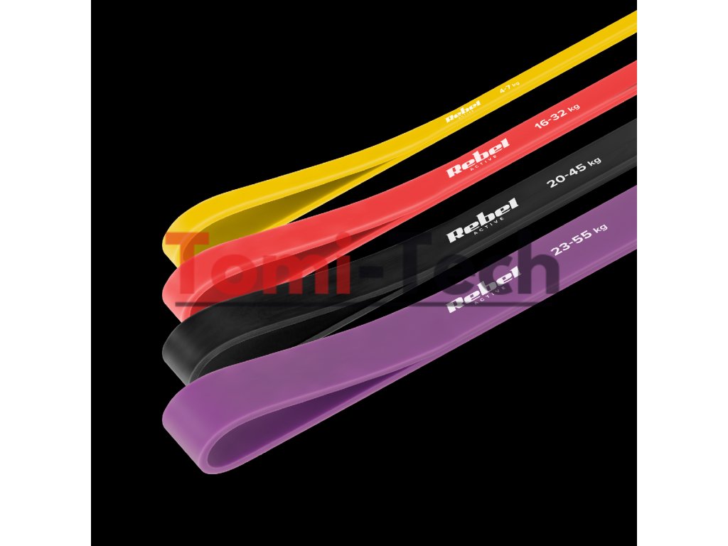 Sada latexových cvičebných gumičiek - Power Band PLs-2, 4-45 kg, 4 gumičky, REBEL ACTIVE