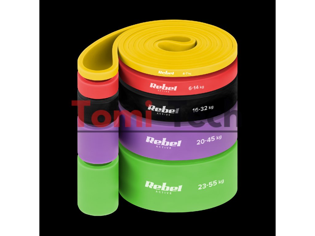 Sada posilňovacích gumičiek TPE - Power Band PTs-1, 4-55 kg, 5 gumičiek TPE, REBEL ACTIVE