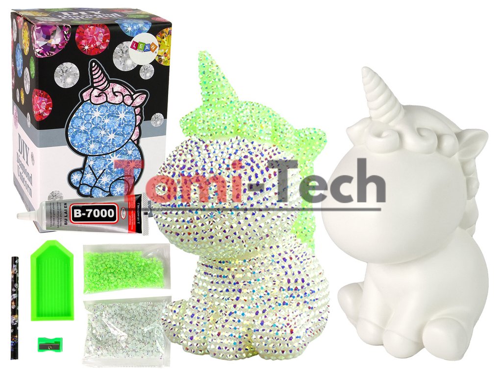Súprava obsahuje špeciálnu podložku, na ktorú sú umiestnené kryštály; dve farby ozdobia malého jednorožca ľubovoľným spôsobom. Špeciálne lepidlo vytvorí lepivý povrch pre figúrku, vďaka ktorému sa diamanty prilepia. Umiestnite ich jeden po druhom a pred vašimi očami sa objaví krásna figúrka! Ozdobí vašu izbu!