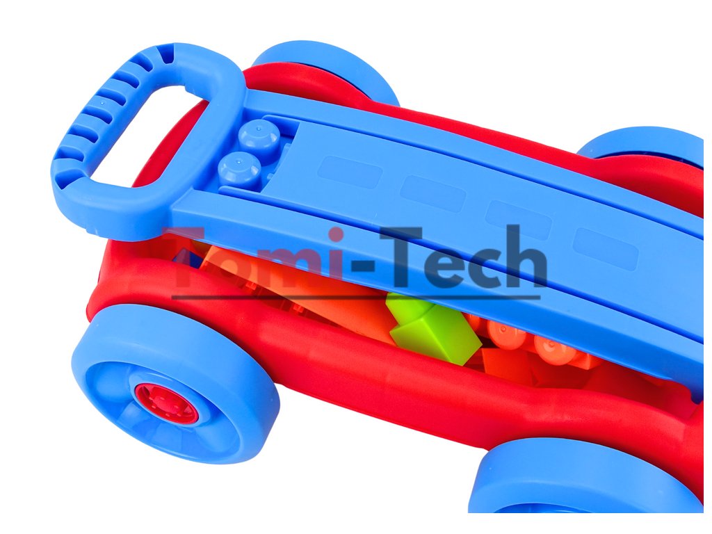 Súprava stavebníc obsiahnutá vo vozíku im umožňuje stavať neobmedzené množstvo farebných štruktúr a zároveň podnecuje kreativitu a predstavivosť tých najmenších. Stavebnice ponúkajú nielen zábavu, ale aj rozvíjajú manuálne zručnosti dieťaťa a koordináciu oko-ruka.