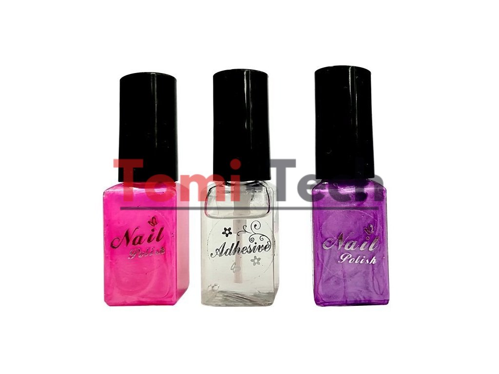 - 3 farby laku na nechty: žltý, ružový, priehľadný