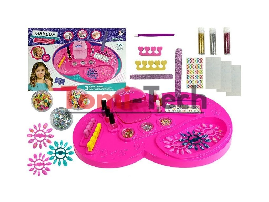 Sady, ktoré vylepšujú krásu, sú niečo, čo všetky dievčatá milujú; sledujú svoje mamy alebo staršie sestry a chcú ich napodobňovať. To okorení ich zábavu a umožní im vžiť sa do úlohy kozmetičky alebo nechtovej stylistky, ako v tomto prípade. Predstavujeme perfektný návrh pre malú nechtovú stylistku. Laky a priložená kozmetika sú veľmi bezpečné a netoxické, vytvorené s ohľadom na deti.