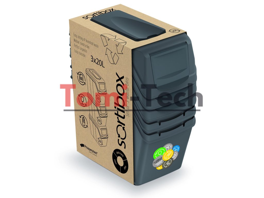 Sada obsahuje- Sadu triediacich košov Sortibox 3x20L sivých ISWB20S3