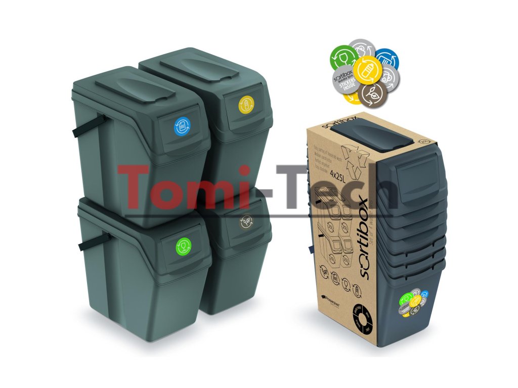 Sortibox 4x25L sada sivých triediacich košov na odpad ISWB25S4