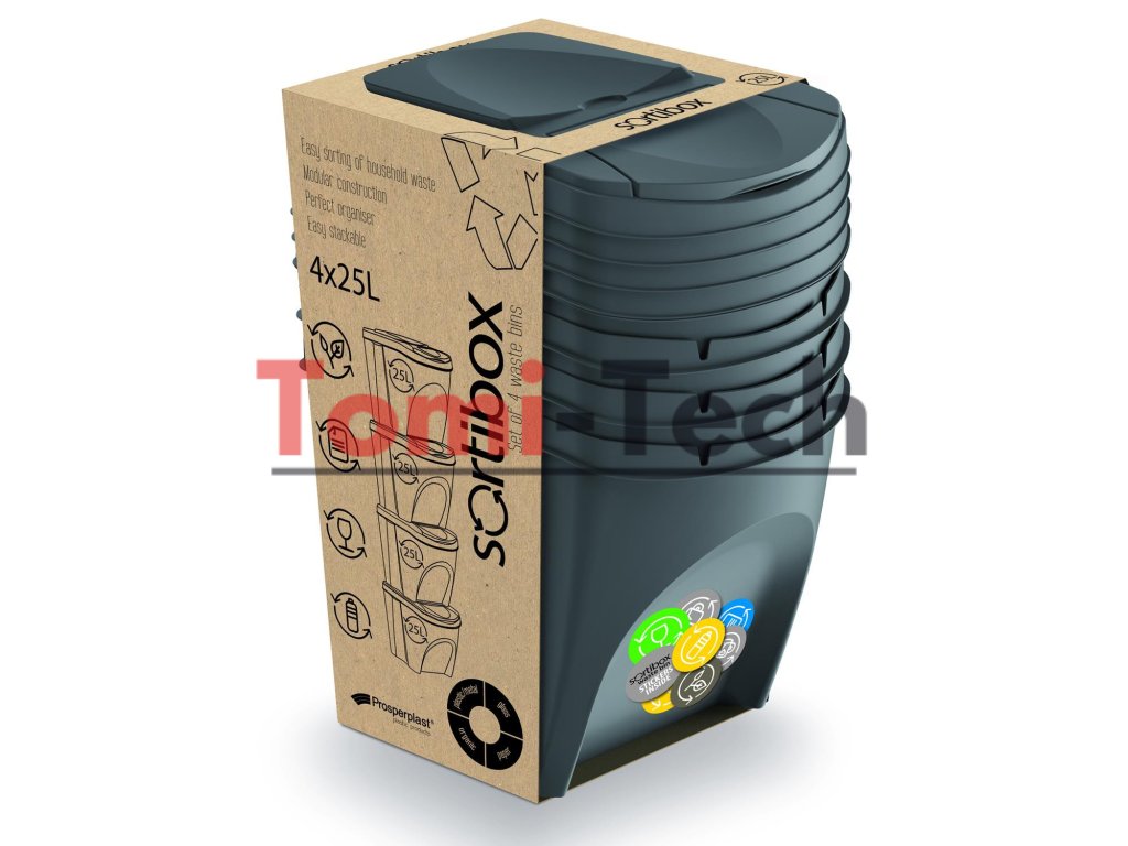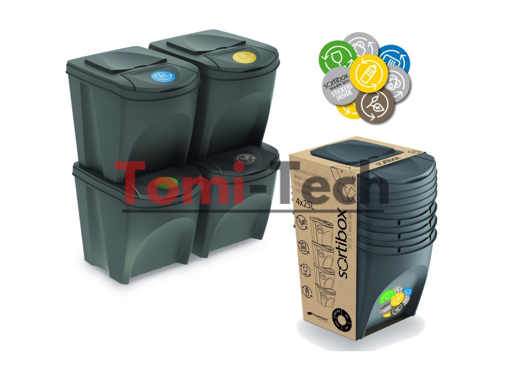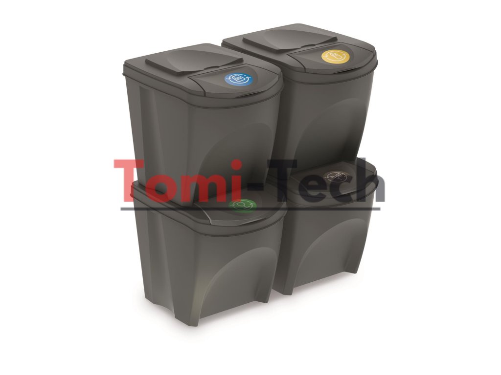 Sada obsahuje- Sadu sivých košov na triedenie odpadu Sortibox 4x25L