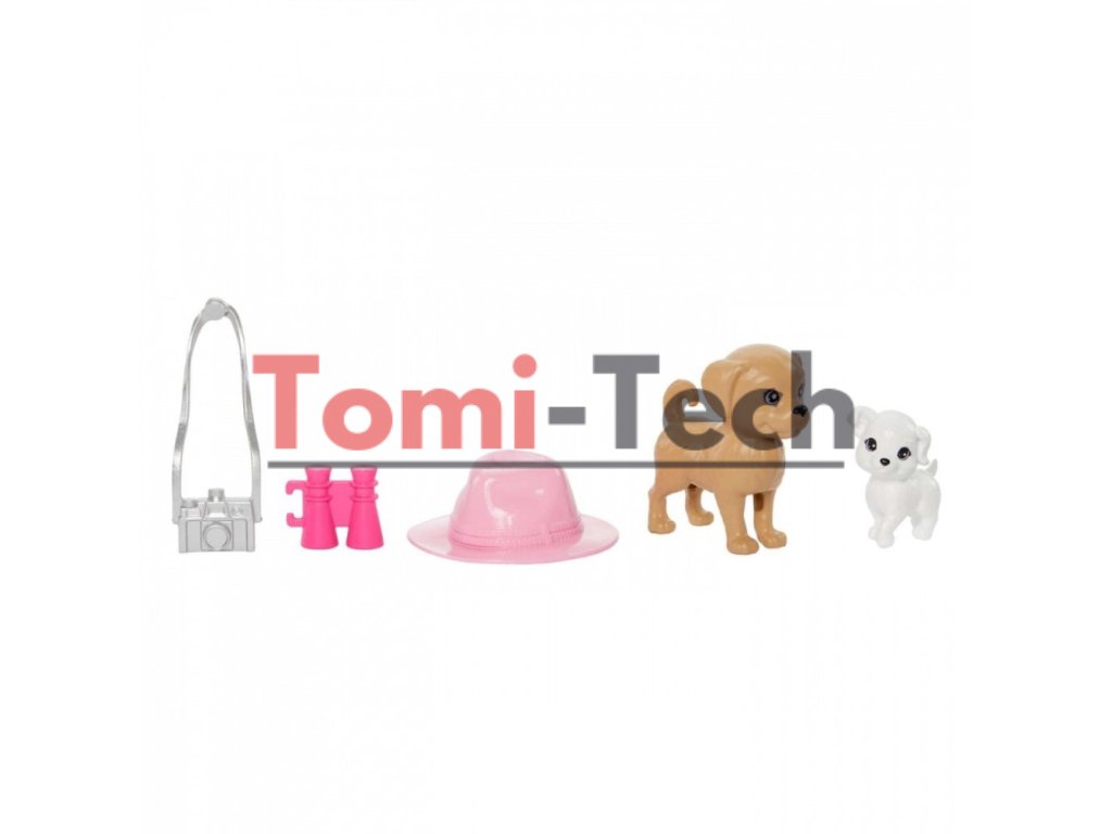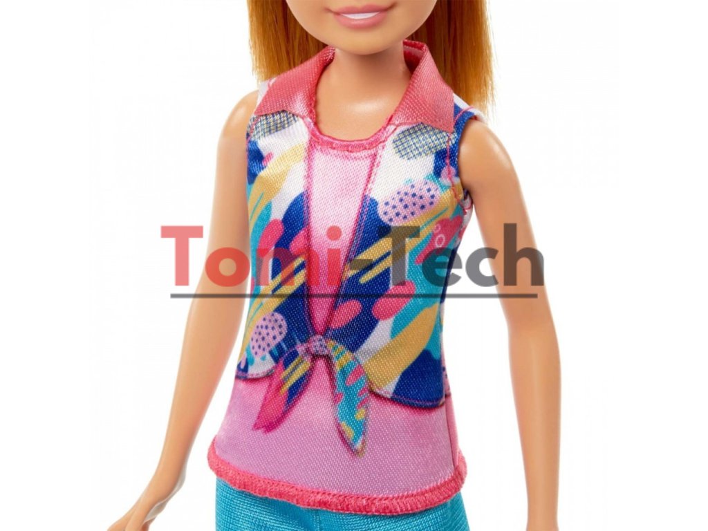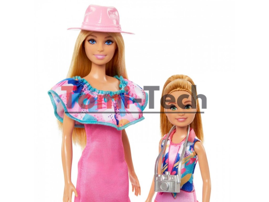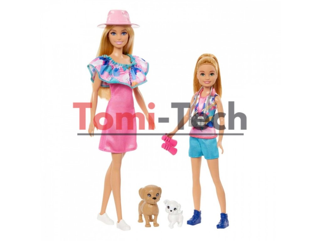 Barbie a Stacie sa spoločne vydávajú na letné dobrodružstvá! Ich outfity vyzerajú presne ako tie v knihe „Barbie: Stacie na záchranu“. Staršia sestra Barbie má na sebe šaty s volánikovým výstrihom. A športová malá sestra Stacie má oblečené farebné tričko a šortky. Objavte radosť z objavovania nových miest s hračkami ako fotoaparát, ďalekohľad, klobúk a dva psy. Bábiky nestoja samy na sebe. Farby a dekoratívne prvky sa môžu líšiť.