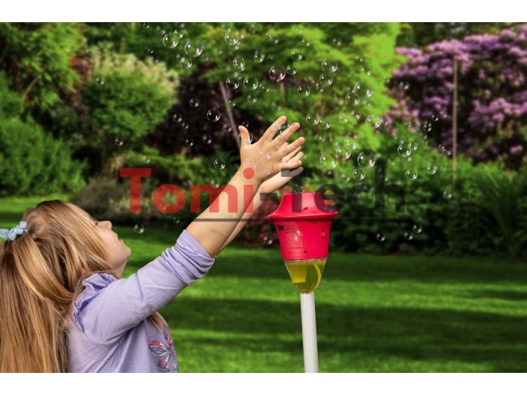 - Sada obsahuje záhradný bublinkovač v tvare lampáša s LED lampou, podstavec a 115 ml roztoku na malé bublinky.