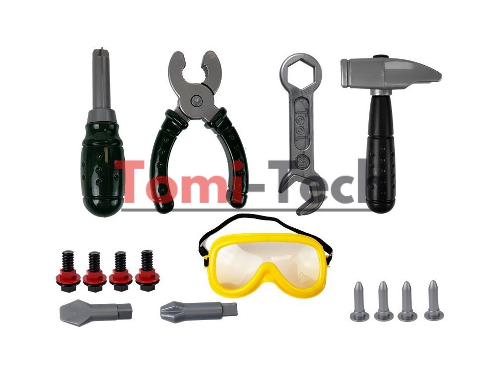 Sada obsahuje prilbu a ochranné okuliare, vďaka ktorým sa vaše dieťa bude cítiť ako skutočný kutil a bude sa počas hry cítiť bezpečne.