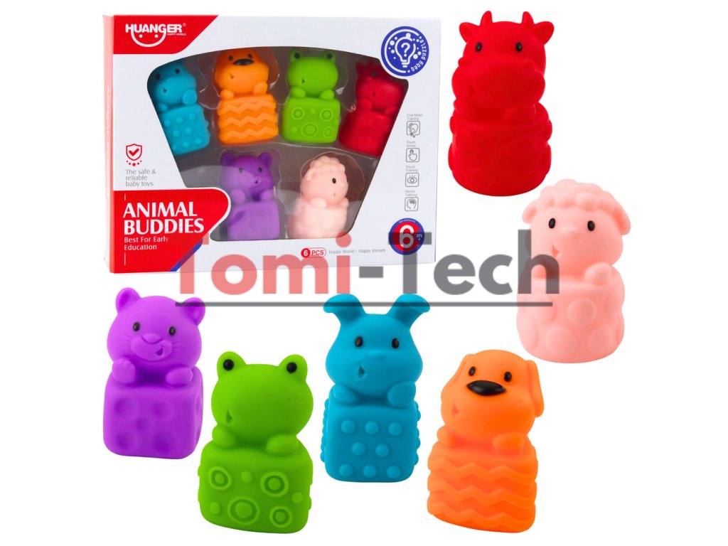 Sada mäkkých gumených blokov s farebnými zvieratkami, 6 ks.