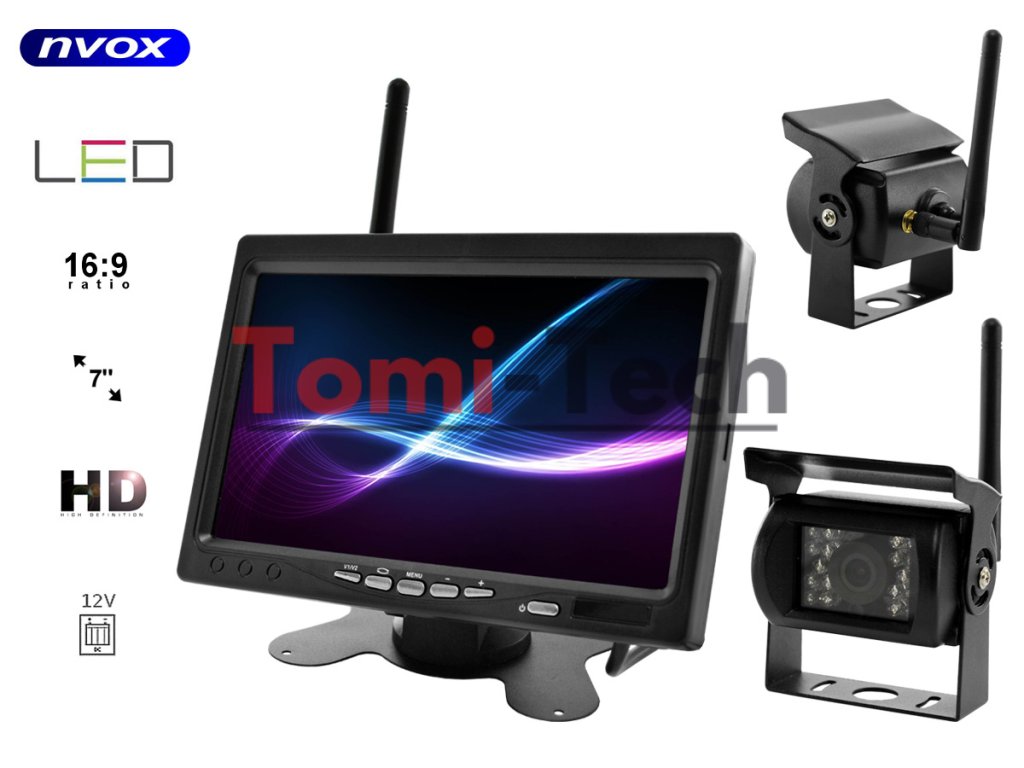 7-palcový 12V/24V LCD monitor do auta a 2 bezdrôtové kamery
