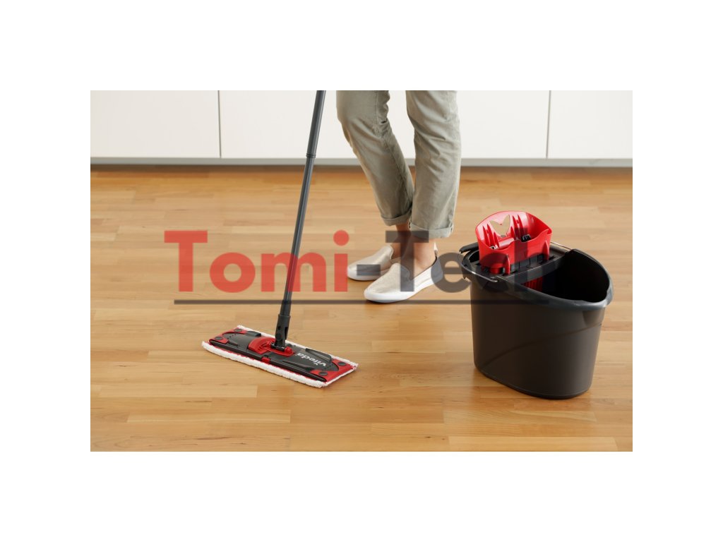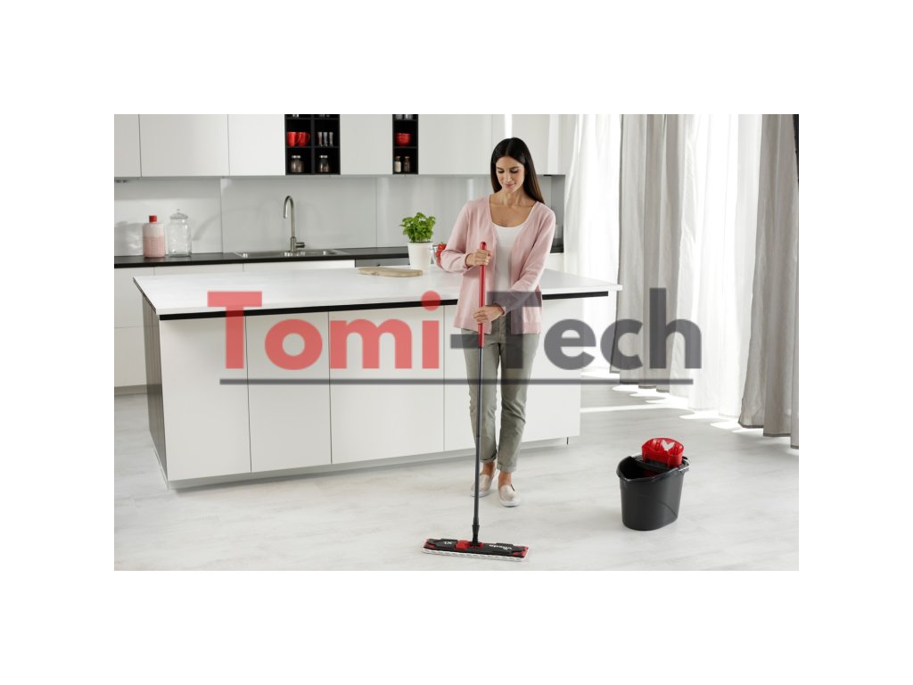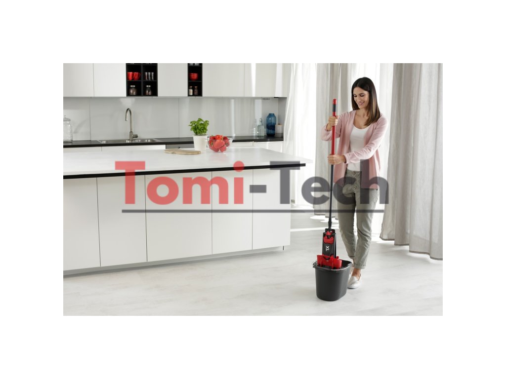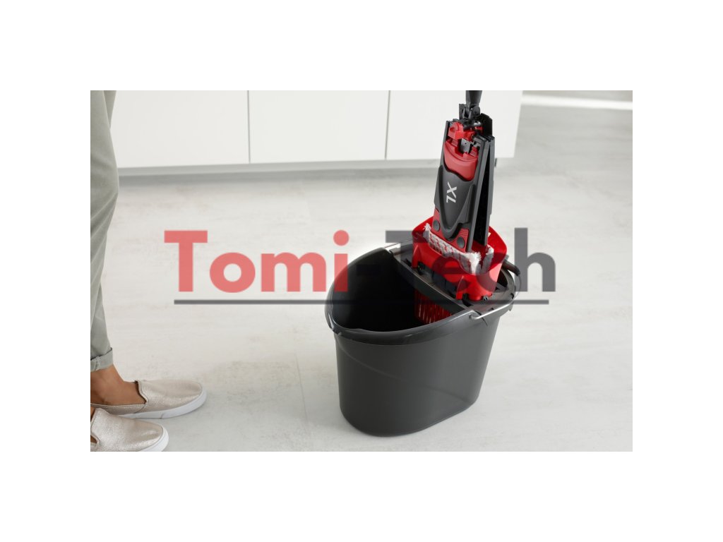 Vystužený a vylepšený držiak na mop umožňuje súčasné žmýkanie mopu ručne aj vo vedre. Vedro je vybavené špecializovaným žmýkačom.