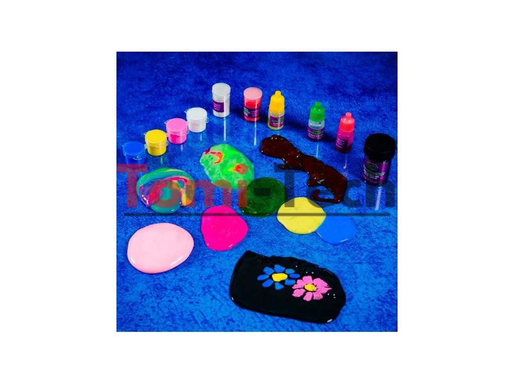 Fantastická vedecká stavebnica schválená Dr. Slimeom. Zabavte sa pri tvorení slizu vo všetkých možných farbách... s exkluzívnou doskou na tvorbu slizu!
