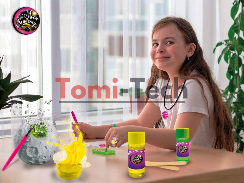 Vstúpte do Mesačnej akadémie a pridajte sa k Leandre, Albe a Nycte, hviezdnym študentkám, ktoré vás naučia všetko! Kreatívna sada plná kreatívnych zážitkov. Ponorte sa do mesačného kameňa a objavte minerál, drahokam svietiaci v tme a drahokam, ktorý mení farbu v závislosti od vašej nálady! Navyše, s novo objavenými drahokamami si môžete vytvoriť magické prstene a prívesky, ktoré môžete okamžite nosiť!