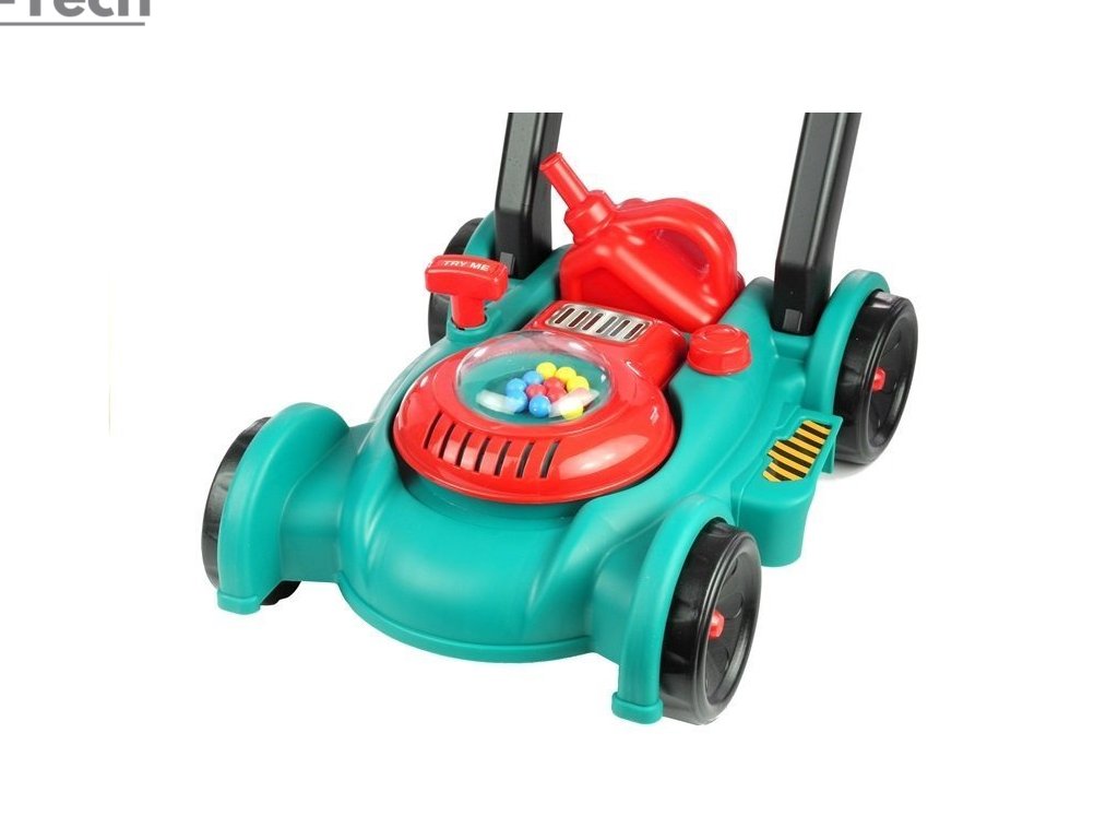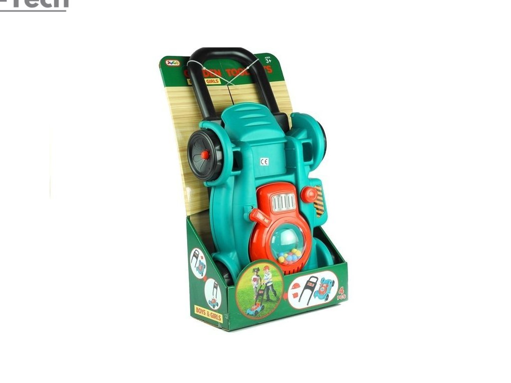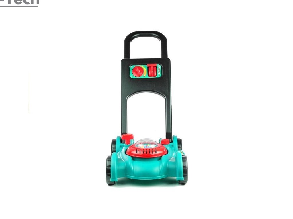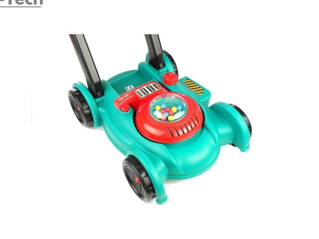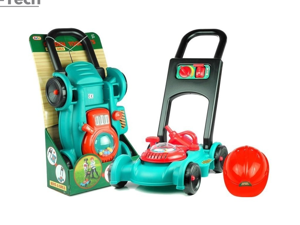 Hračská kosačka na trávu má funkciu skladania, takže pri skladovaní zaberá minimálny priestor. Jej hlavnou výhodou je **manuálny štartér**, ktorý sa dá aktivovať potiahnutím gombíka s nápisom **vyskúšaj ma** - zvuky, ktoré vaše drobček počuje, sa budú podobať zvukom vychádzajúcim zo skutočného stroja! Hračka má gombík a páku, ktorými sa dá pohybovať, a tiež farebné guľôčky, ktoré vydávajú zvuk pri tlačení kosačky.