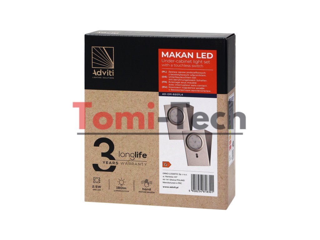 Sada LED svietidiel MAKAN pod skrinku 2W, 180lm, 4000K, s bezdotykovým vypínačom, INOXDodatočné parametre