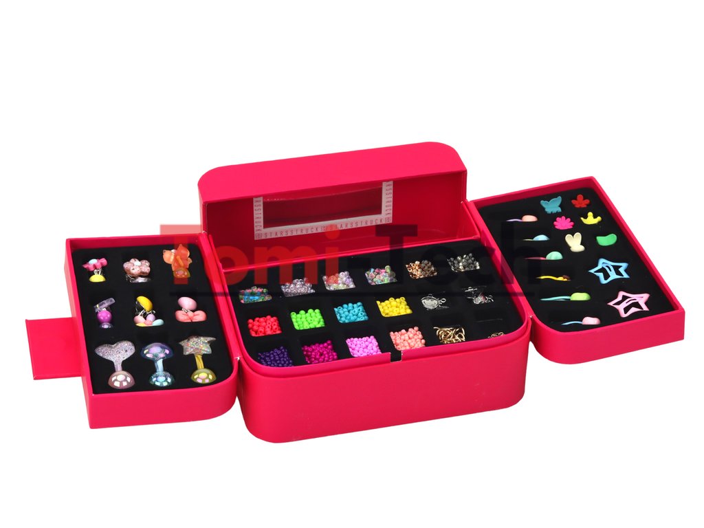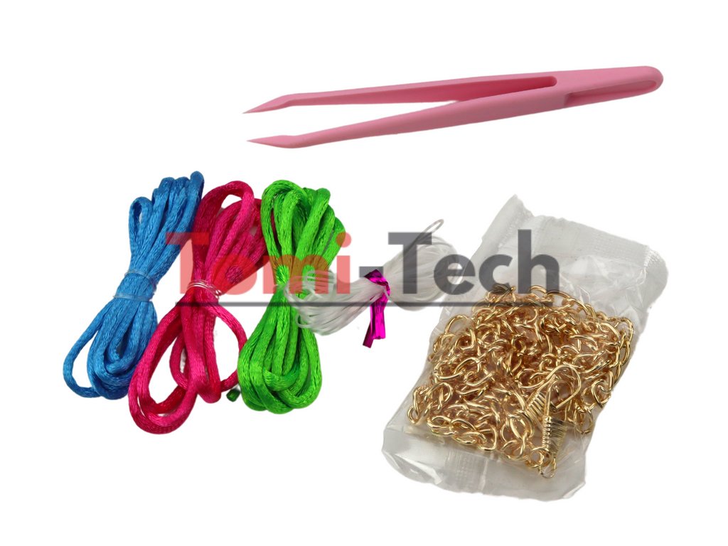 Vnútro krabičky obsahuje množstvo rôznych korálikov a príveskov, ktoré inšpirujú k jedinečným projektom. Nájdete tu aj 3 šnúrky v rôznych farbách: ružovú, zelenú a modrú a vlasec, čo umožňuje ešte väčšiu rozmanitosť a možnosti úpravy.