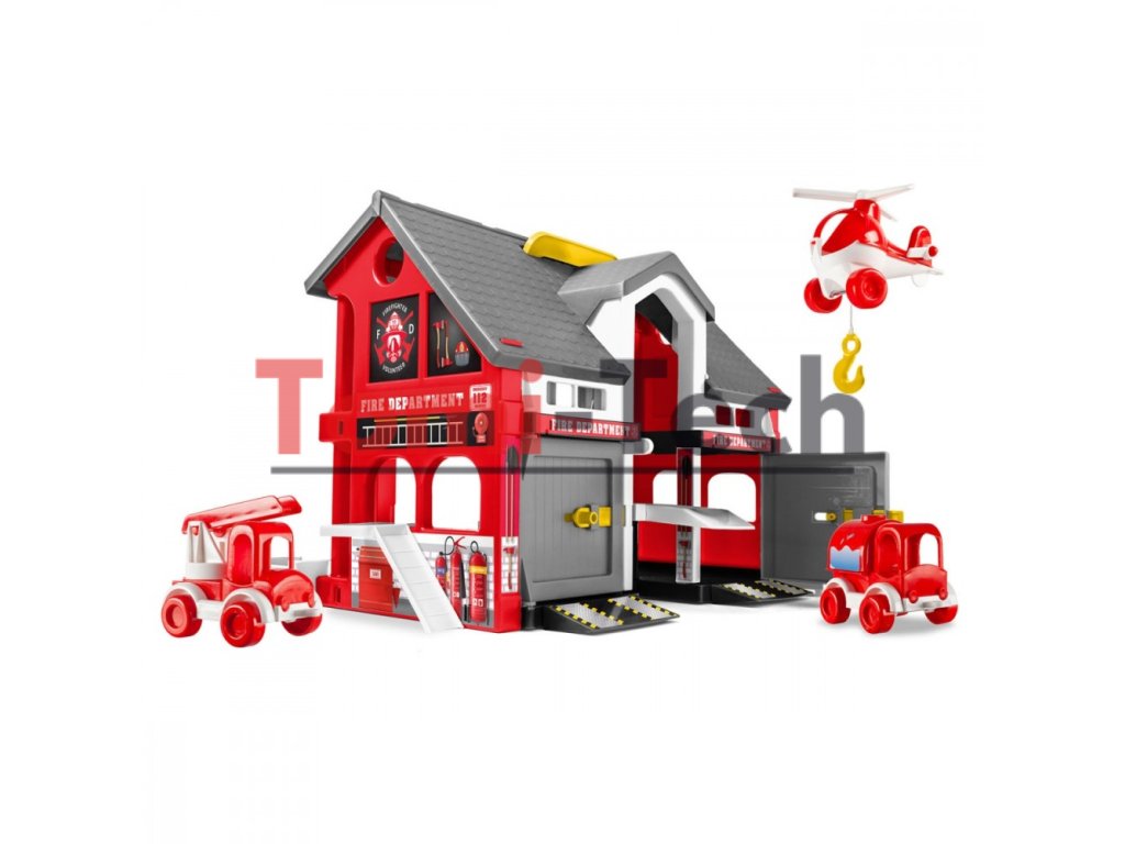 Sada obsahuje domček s otváracími dverami, výťah, 3 vozidlá a sadu 34 samolepiacich nálepiek. Hasičská stanica zo série Herný domček ponúka veľa príležitostí hrať sa na statočných hasičov, ktorí reagujú na každé volanie, aby uhasili požiare a zabezpečili našu bezpečnosť. Všetky prvky hasičskej stanice zo série Herný domček sú vyrobené z odolných materiálov, bezpečných pre deti od 3 rokov. Domček je tiež vybavený rukoväťou namontovanou na streche, takže sa dá ľahko premiestniť kamkoľvek.