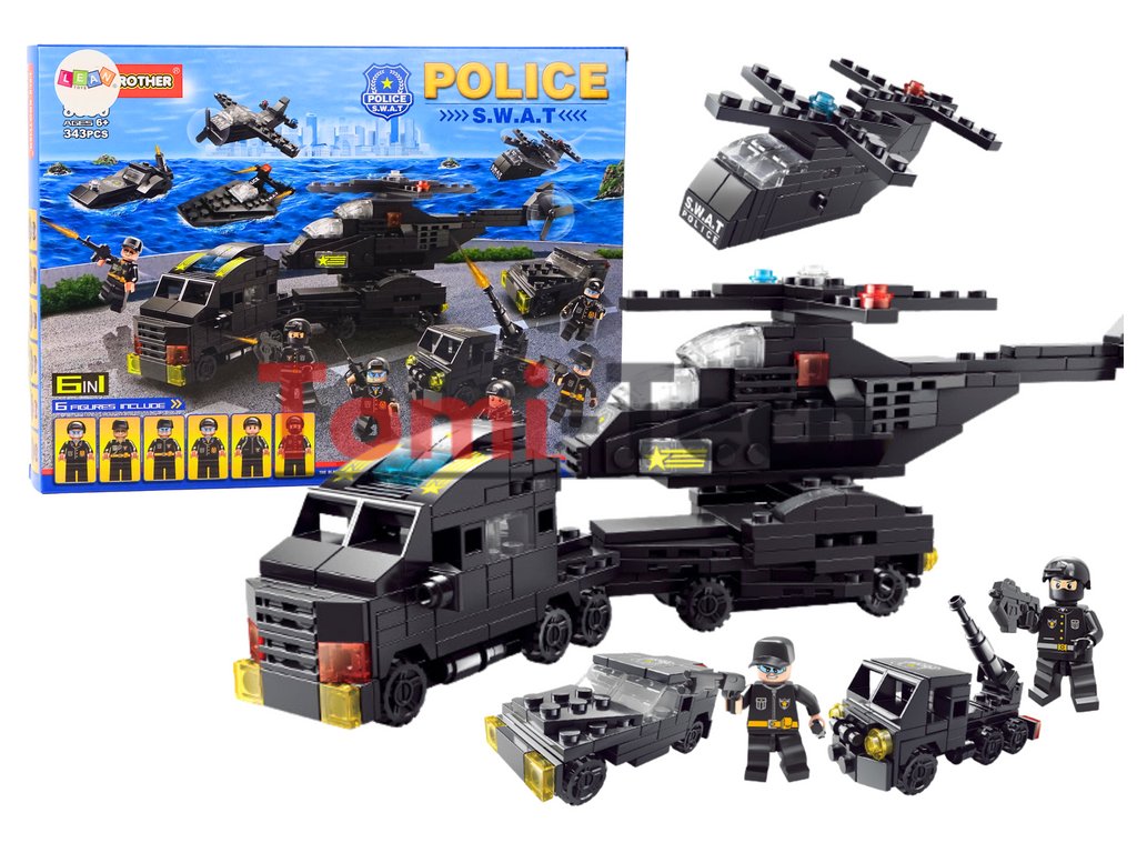 Policajná sada, kocky, policajné vojenské figúrky, 343 dielikov, 6 v 1
