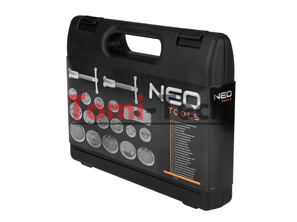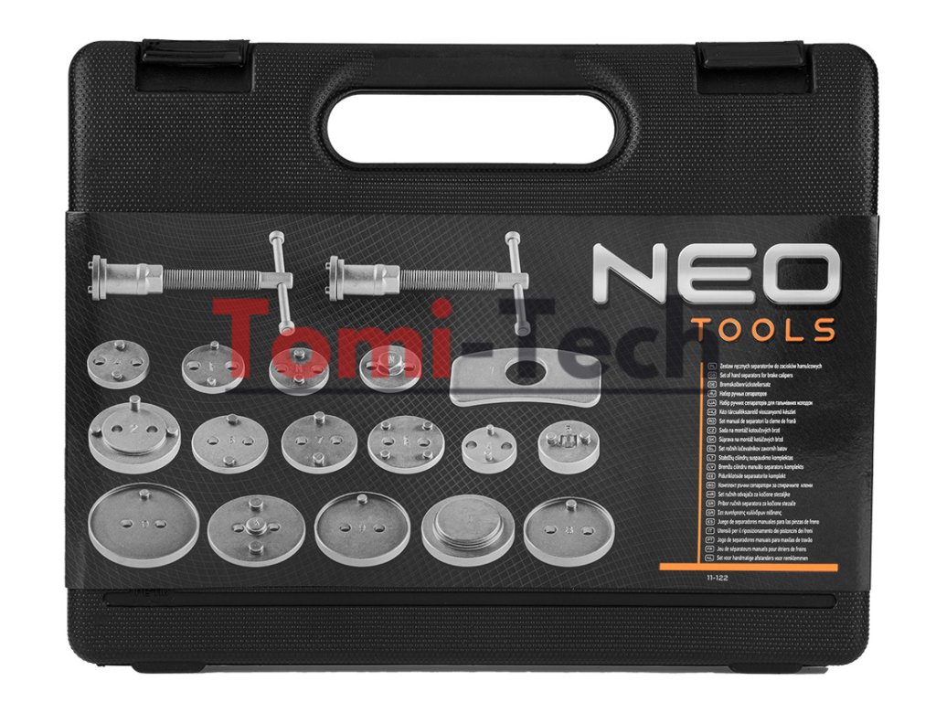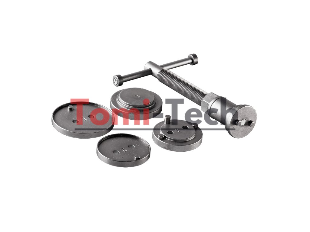 Sada manuálnych oddeľovačov brzdových strmeňov (12 kusov). Nástroj sa skladá zo skrutkového lisu, pravotočivého závitu (na stlačenie piestu ho otáčajte v smere hodinových ručičiek) a sady dosiek, ktoré umožňujú výmenu piestov v širokej škále automobilov. Vhodné pre: Citroen: Xm, Xantia; Alfa Romeo; Audi; Austin; BMW; Honda; Jaguar; MB; Mitsubishi; Nissan; Rover; Toyota; VW; Ford; Mazda; Subaru; Saab; Rover, GM, Peugeot, Renault, MazdaDodatočné parametre