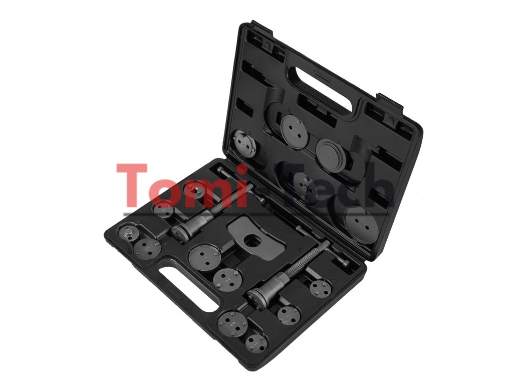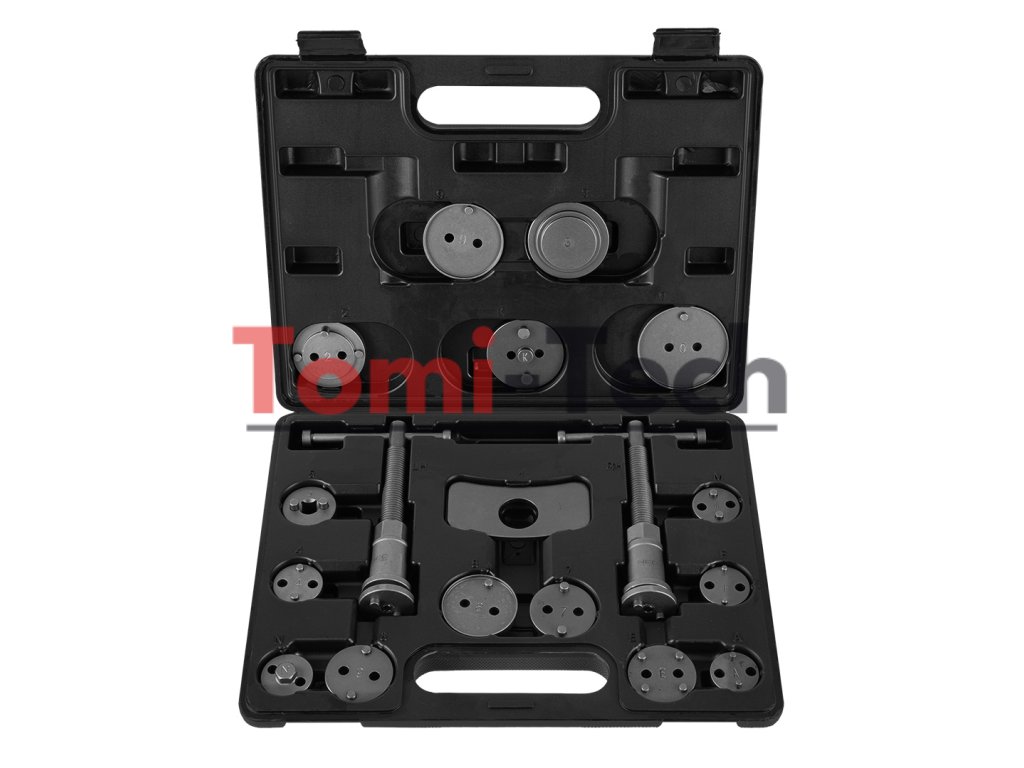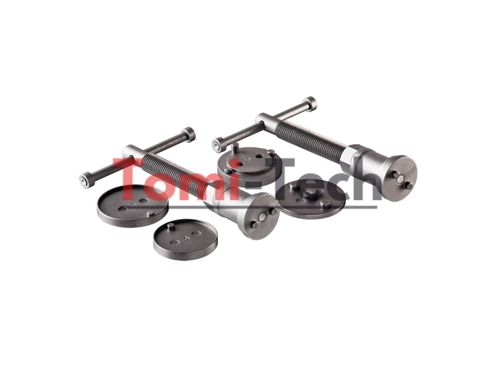 Sada manuálnych oddeľovačov brzdových strmeňov (18 kusov). Nástroj sa skladá z dvoch skrutkových lisov, jedného pre pravákov a jedného pre ľavákov, a sady dosiek umožňujúcich výmenu piestov v širokej škále automobilov. Vhodné pre: Citroen: Xm, Xantia; Alfa Romeo; Audi; Austin; BMW; Honda; Jaguar; MB; Mitsubishi; Nissan; Rover; Toyota; VW; Ford; Mazda; Subaru; Saab; Rover, GM, Peugeot, Renault, MazdaDodatočné parametre