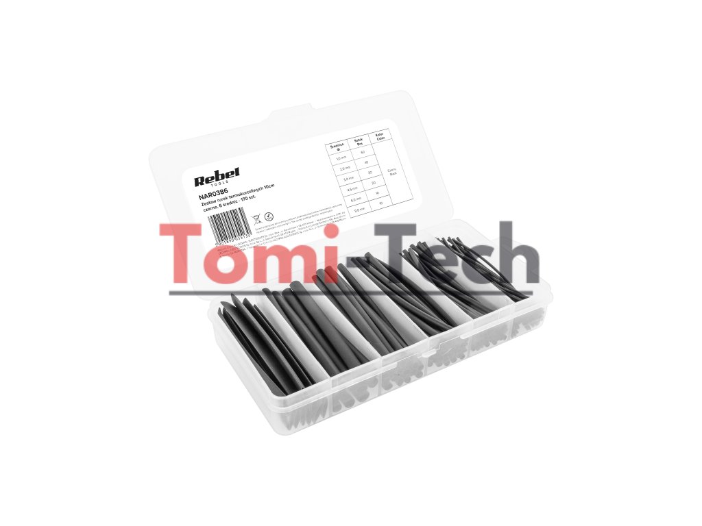 Sada 10 cm zmršťovacích bužírok, čiernych, 6 priemerov - 170 ks.