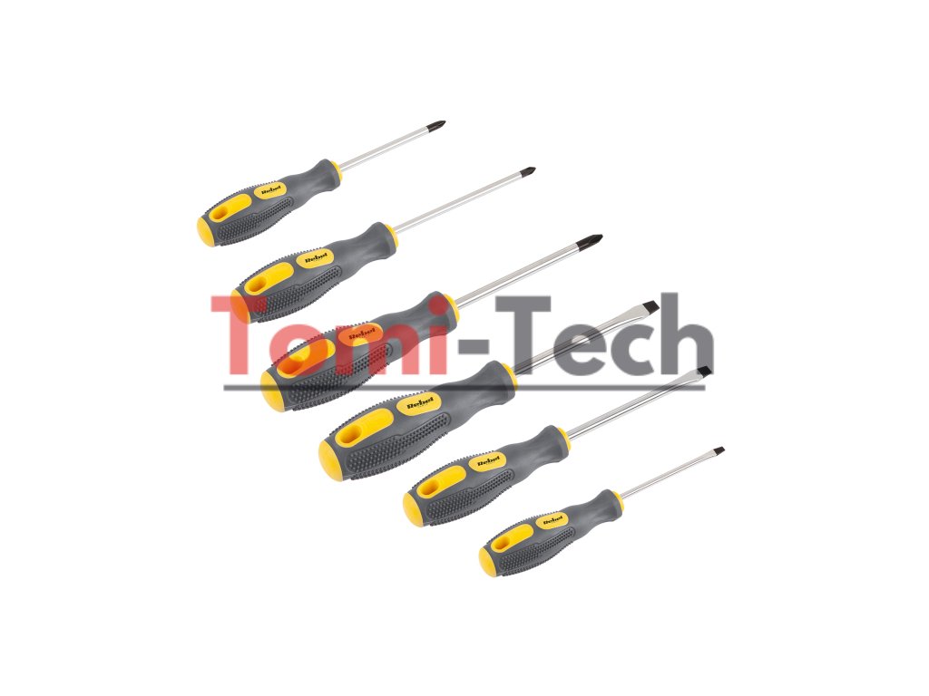 Potrebujete spoľahlivé nástroje, ktoré budú fungovať v každej situácii? 6-dielna sada skrutkovačov. Ponúka všestrannosť s rôznymi hrotmi (plochý SL a krížový PH), ideálne pre širokú škálu úloh, od domácich opráv až po presné práce s elektronikou. Tieto nástroje sú vyrobené z chróm-vanádiovej ocele, sú mimoriadne odolné a odolné voči korózii, čo zaručuje dlhú životnosť aj v náročných podmienkach.