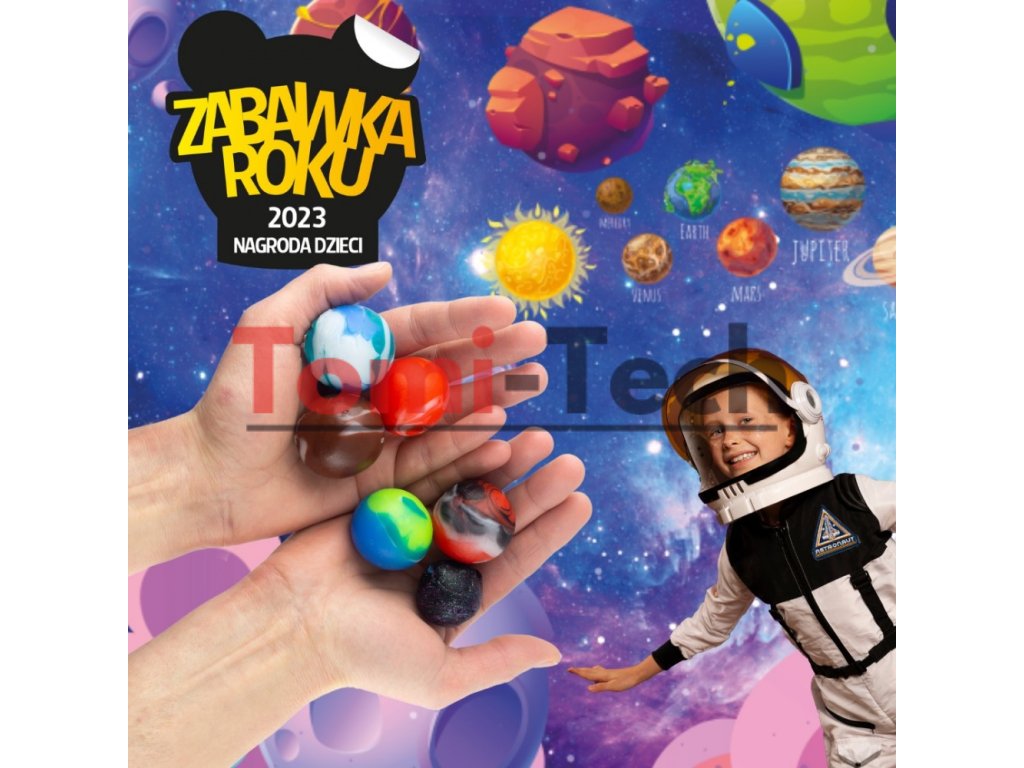 Sada obsahuje gélové tekutiny, aktivátor a všetko príslušenstvo potrebné na vykonanie domáceho experimentu, počas ktorého sa gél premení na planétu pripravenú na hranie. Hra so sadou je skvelou príležitosťou na objavovanie tajomstiev vesmíru, experimentovanie s farbami a objavovanie zaujímavých chemických faktov.