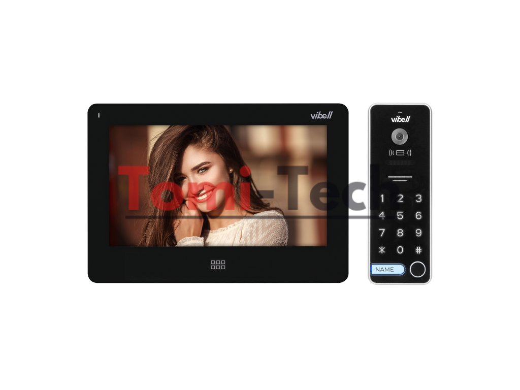 Súprava videovrátnika, bezšnúrový farebný, 7" LCD, dotyková obrazovka, OSD menu, pamäť, slot pre SD kartu, DVR, ovládanie brány, so šifrovaním a RFID, čierna, TAURI MEMO