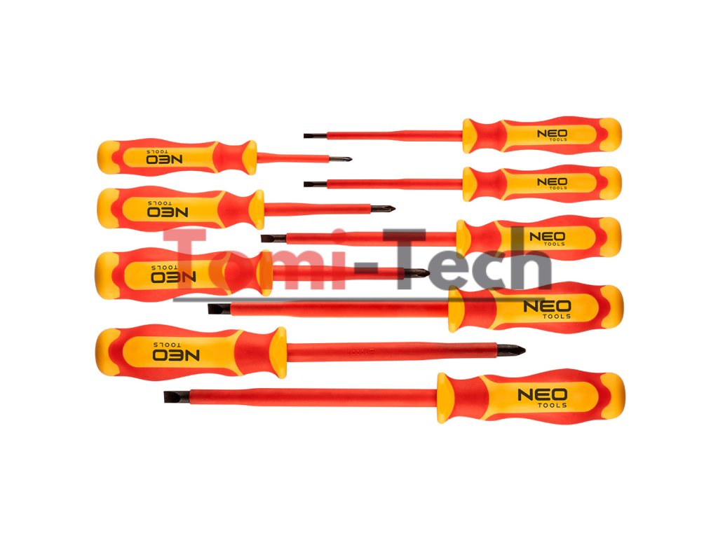 Sada skrutkovačov 1000V, 9-dielna, dvojmateriálová rukoväť, oceľové skrutkovače S2, certifikát TÜV 3*100 mm, 4*100 mm, 5,5*125 mm, 6,5*150 mm, 8*175 mm, PH0*60 mm, PH1*80 mm, PH2*100 mm, PH3*150 mmDodatočné parametre