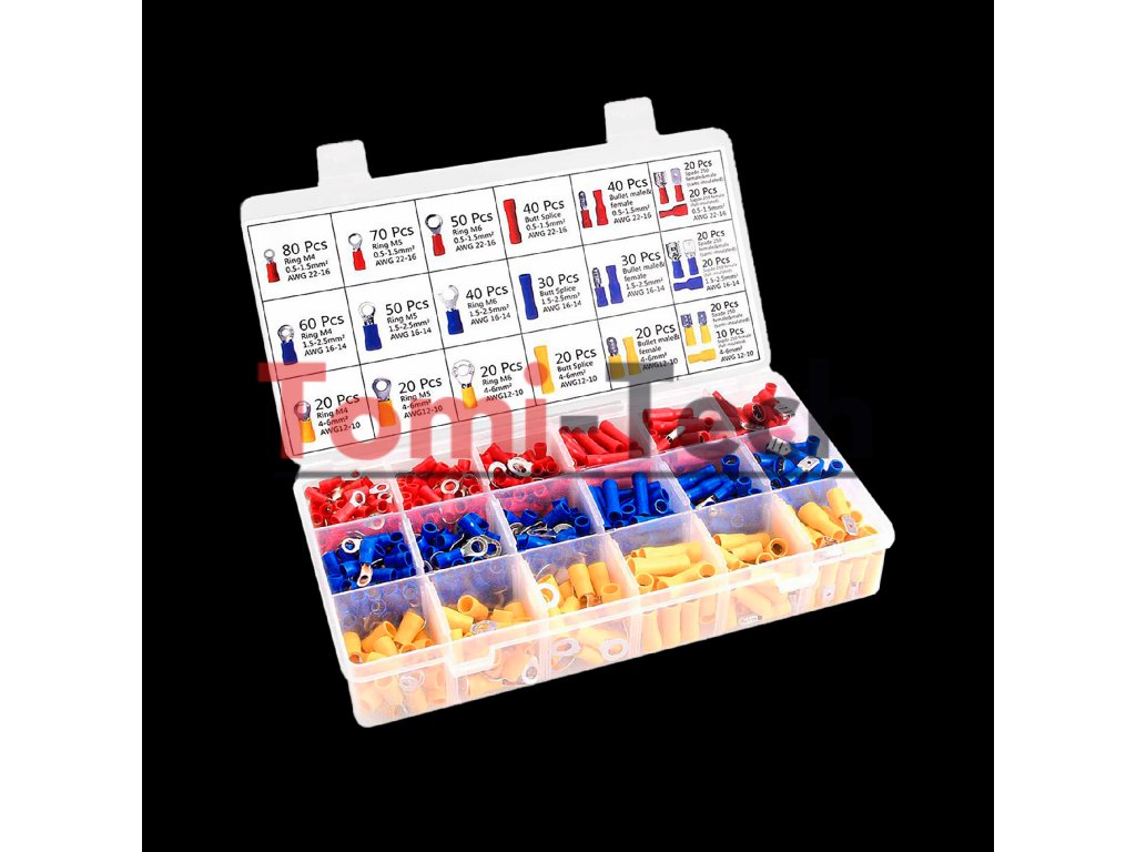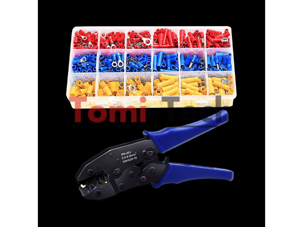 700-dielna sada konektorov + krimpovacie nástroje. Táto robustná sada pozostávajúca z krimpovacích nástrojov a 700 káblových očiek vám umožňuje rýchlo a presne dokončiť elektrické zapojenie. Nástroj je navrhnutý pre široký rozsah krimpovania (tri farebne odlíšené veľkosti čeľustí) a je vybavený spojkovým mechanizmom, ktorý vyžaduje minimálnu silu a zaisťuje správne krimpovanie. Farebne odlíšené veľkosti káblových očiek a krimpovacích nástrojov uľahčujú prácu. Štandardné káblové oká sú prehľadne zoradené v praktickej úložnej krabici. Izolované krimpovacie konektory rôznych veľkostí sa dodávajú v pevnom, flexibilnom plastovom balení. Balenie umožňuje vizuálnu kontrolu a zabraňuje zámene rôznych konektorov. Popis konektora: Materiál: PVC + meď Úložná krabica: plast Napätie: 600 V Veľkosť: Červená: AWG 22-18 vhodná pre vodiče/káble 0,5-1,5 mm² Modrá: AWG 16-14 vhodná pre vodiče/káble 1,5-2,5 mm² Žltá: AWG 12-10 vhodná pre vodiče/káble 4,0-6,0 mm²Dodatočné parametre