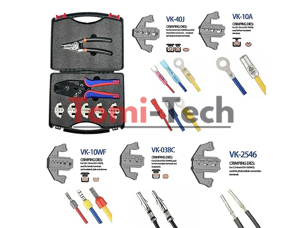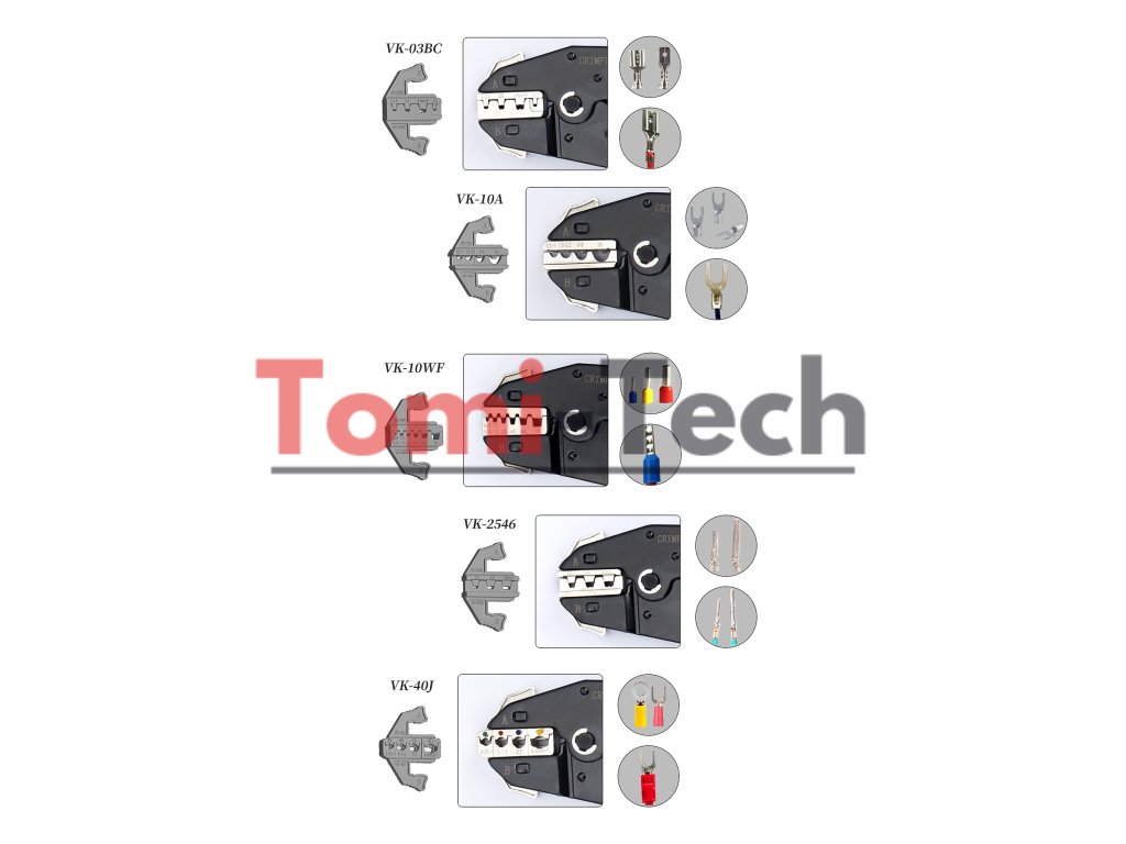 ??VK-40J: Pre 0,25 - 6 mm2 (23-10AWG) - Pre teplom zmršťovacie konektory, izolované svorky a nylonové svorky.