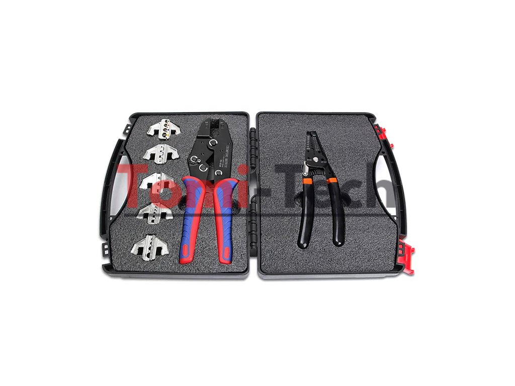 Sada krimpovacích nástrojov s vymeniteľnými čeľusťami bez použitia náradia + kliešte