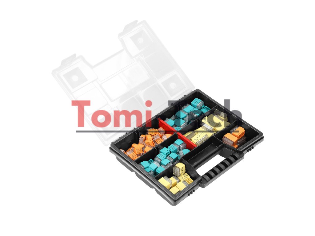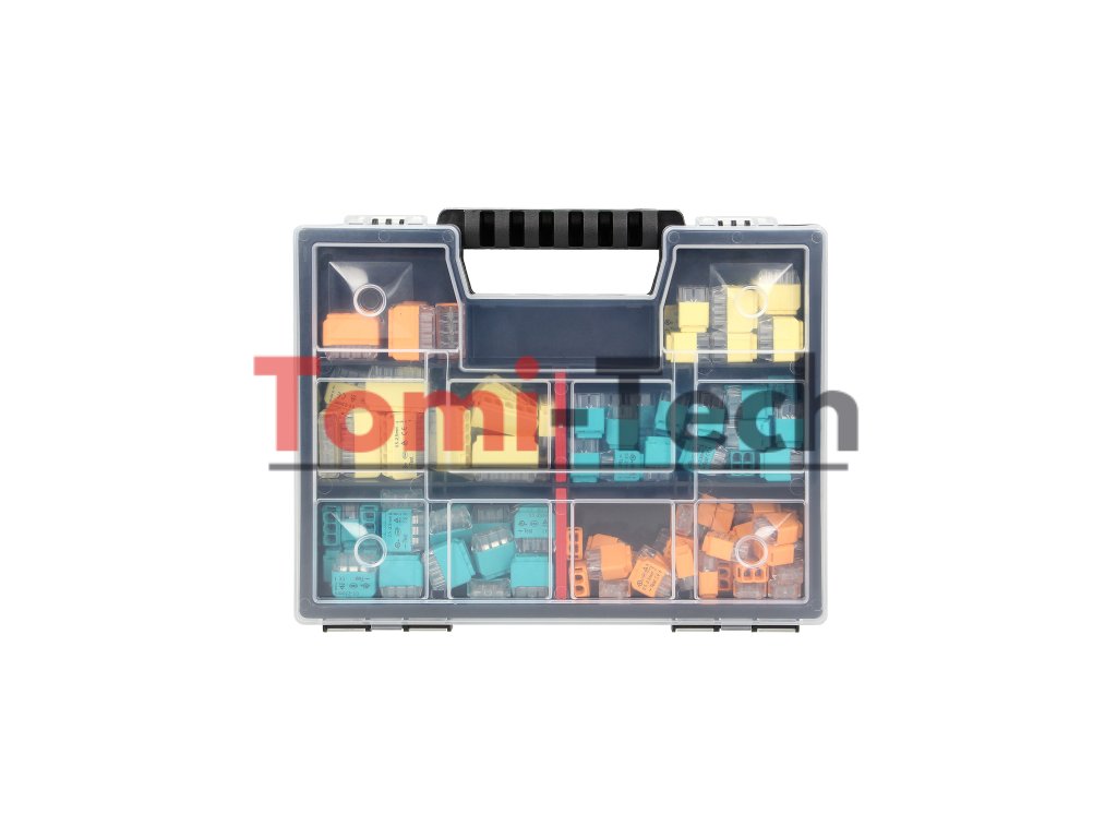 Sada inštalačných konektorov HOUSE, 123 ks. Zásuvné: 30x 2-vodičový. 30x 3-vodičový. 25x 4-vodičový. 20x 5-vodičový. 10x 6-vodičový. 8x 8-vodičový.