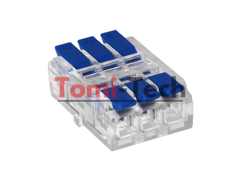3-vodičový, obojstranný kompresný inštalačný konektor; pre akýkoľvek vodič 0,75-4 mm²; IEC 250V/32A; balenie 9 kusov.Dodatočné parametre