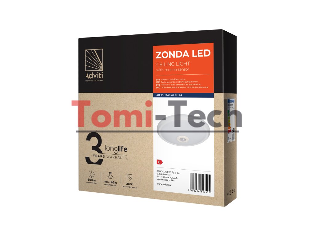 ZONDA LED 12W, stropné svietidlo s pohybovým senzorom, 800lm, IP20, 4000K, mliečny polykarbonát, bieleDodatočné parametre