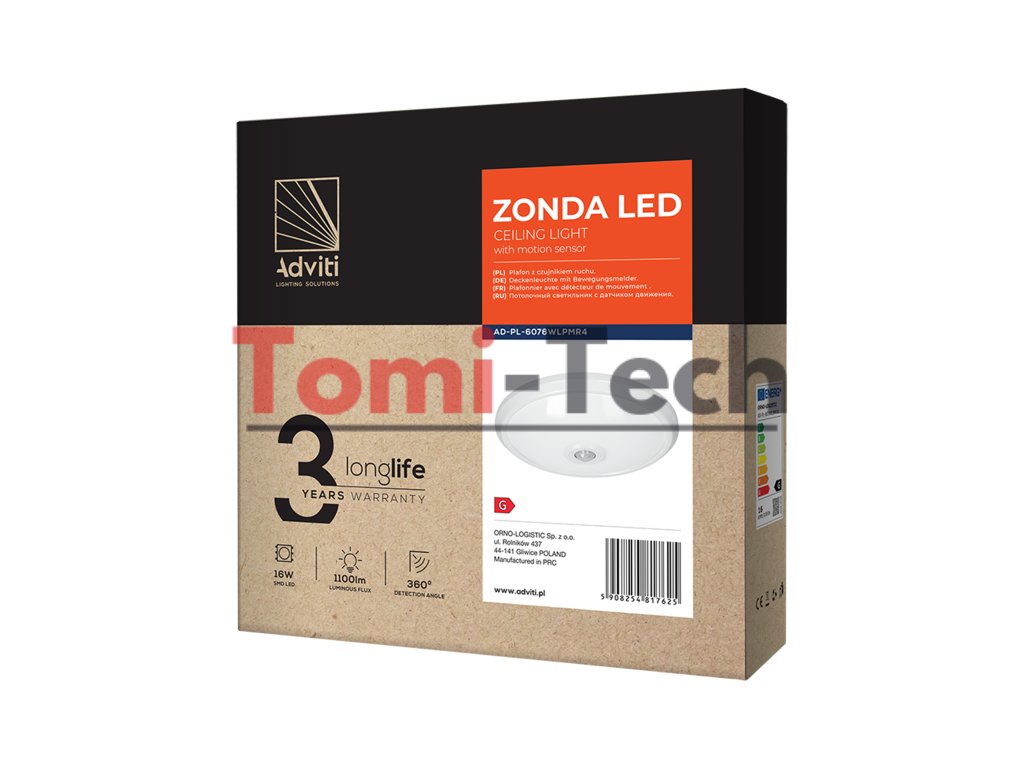 ZONDA LED 16W, stropné svietidlo s pohybovým senzorom, 1100lm, IP20, 4000K, mliečny polykarbonát, bieleDodatočné parametre
