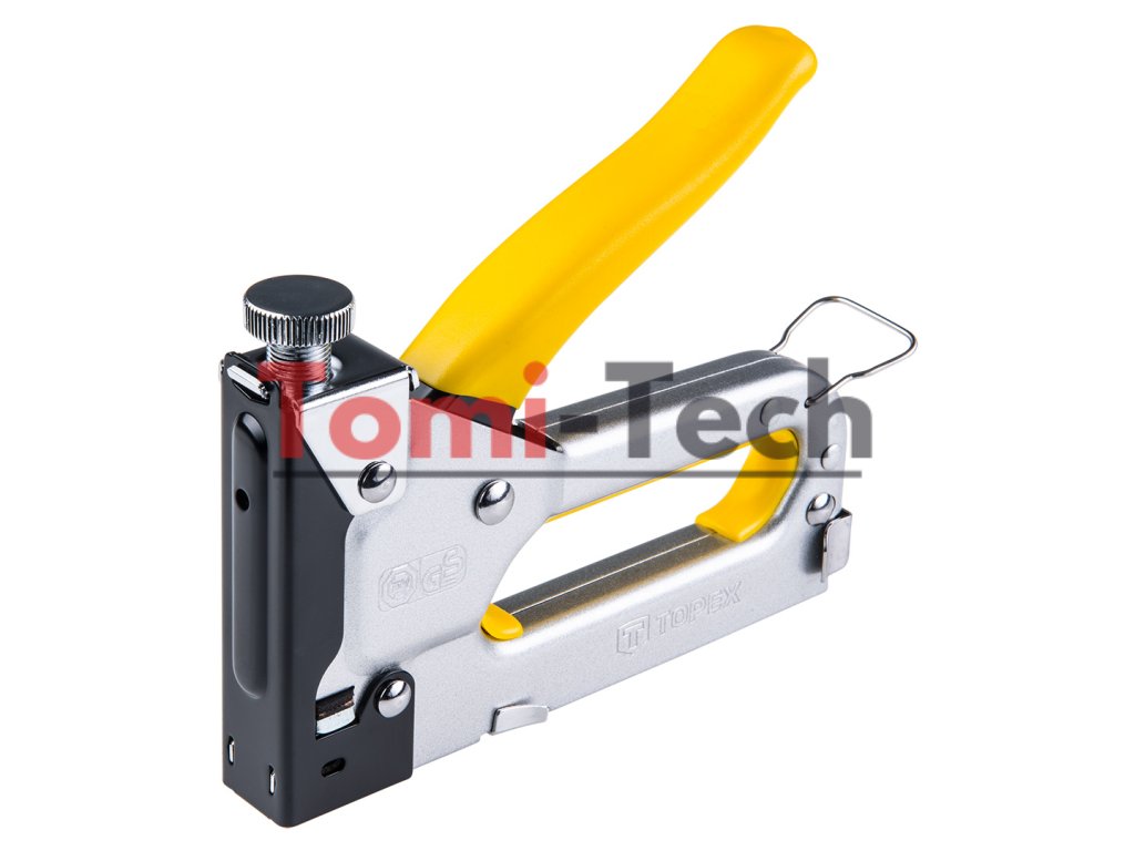 Zošívačka na čalúnenie 4-14 mm, pre sponky typu J, kovové puzdro, nastaviteľná sila pohonu, gumená rukoväťDodatočné parametre
